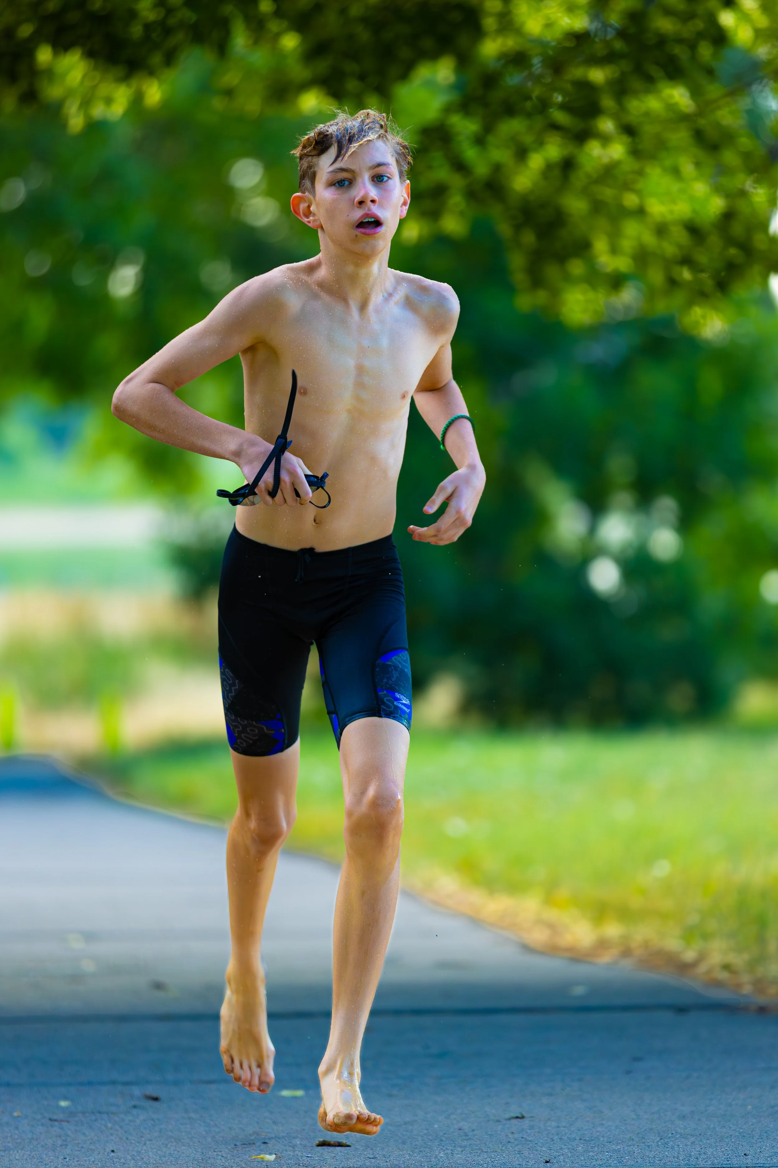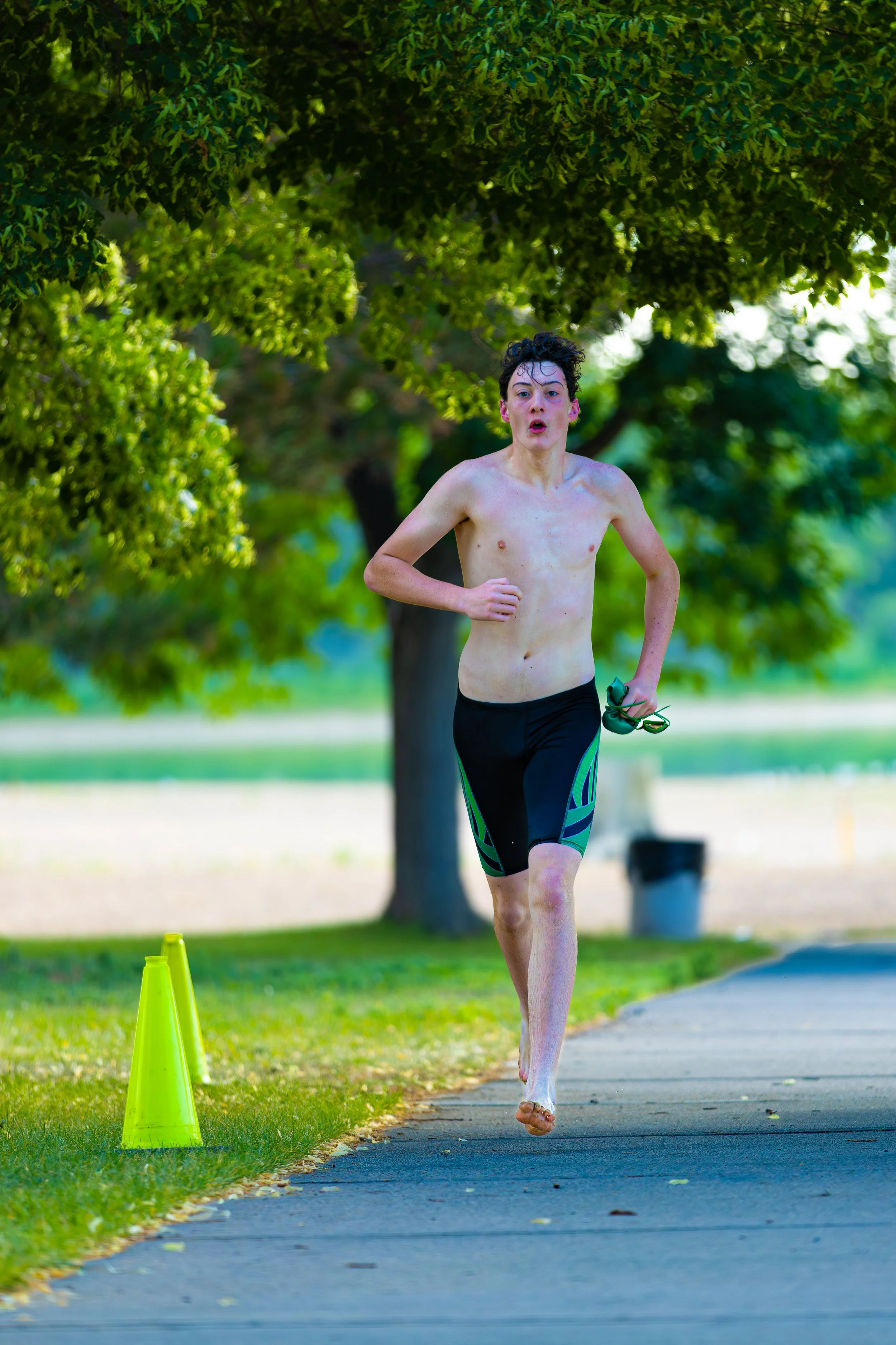 If your child does have a competitive swimsuit, this will work best for all three sports and minimize time spent changing clothing.